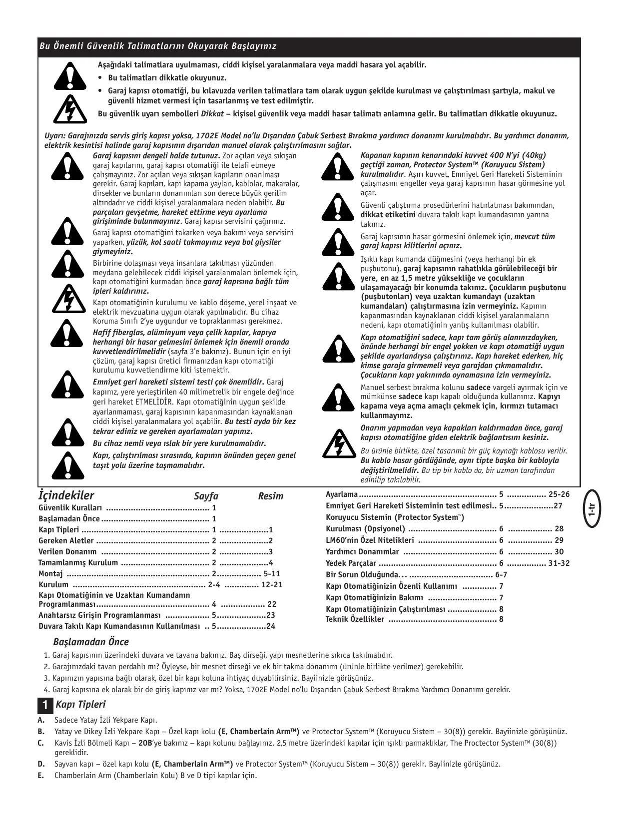 Téléchargez la notice de votre Garaj kapısı motoru au format PDF gratuitement ! Retrouvez votre notice LM60K - CHAMBERLAIN et reprennez votre appareil électronique en main. Sur cette page sont publiés tous les documents nécessaires à l'utilisation de votre appareil LM60K de la marque CHAMBERLAIN.