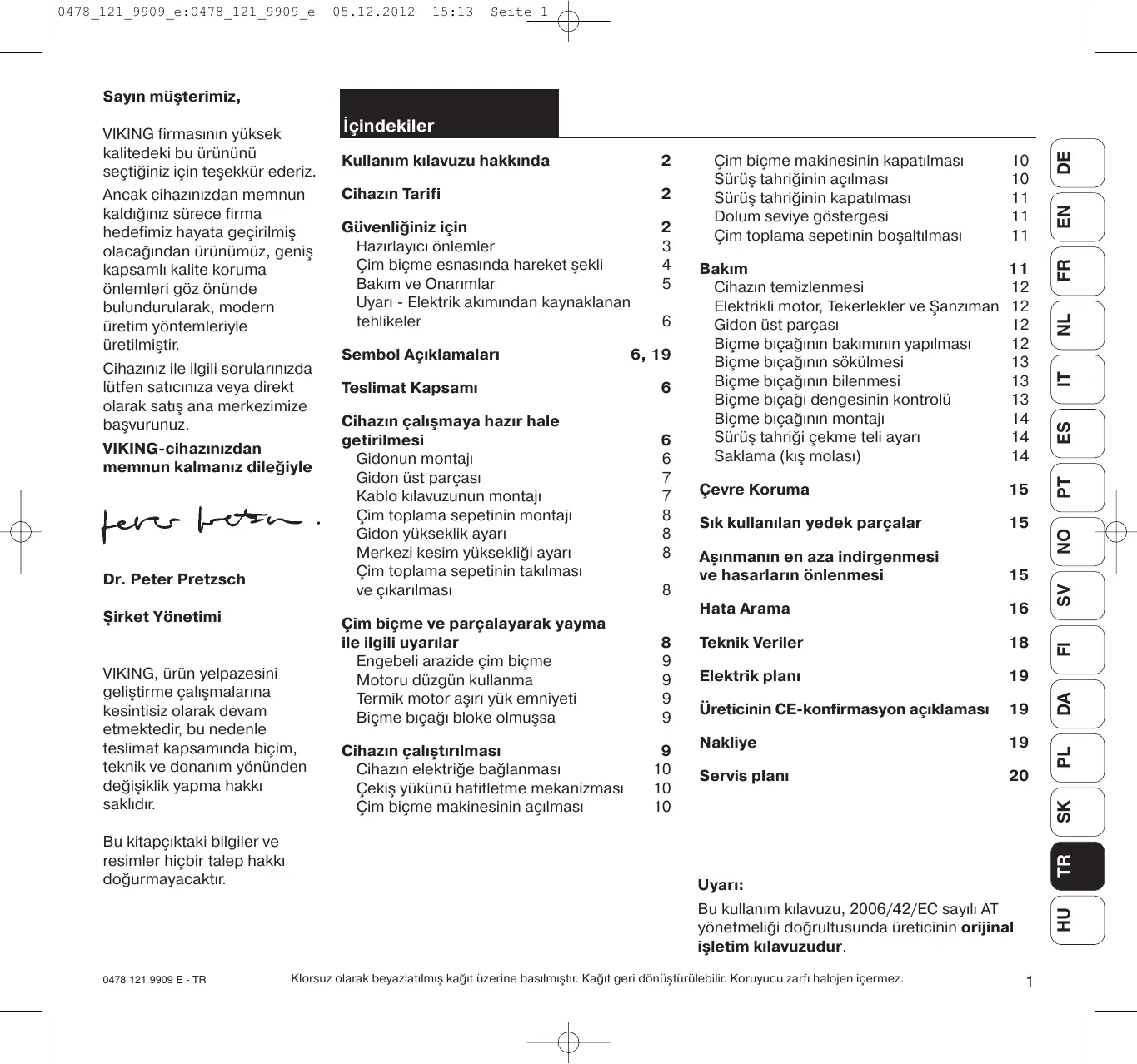 HU Bu kullanım kılavuzu, 2006/42/EC sayılı AT yönetmeliği doğrultusunda üreticinin orijinal işletim kılavuzudur.