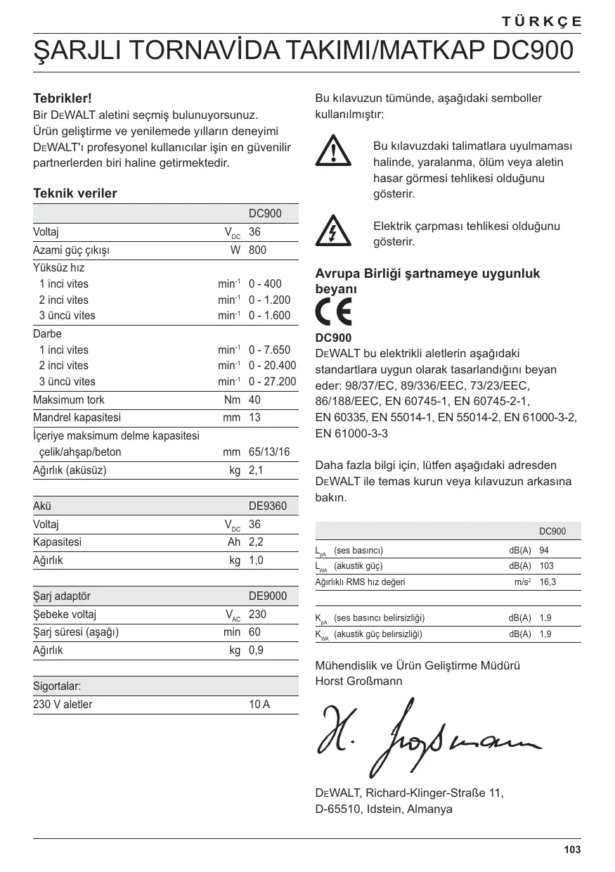 KULLANIM KILAVUZU DC900KL DEWALT