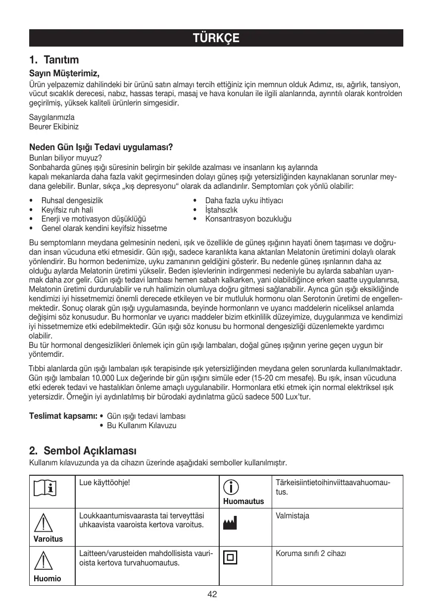 Téléchargez la notice de votre ışık terapisi lambası au format PDF gratuitement ! Retrouvez votre notice TL40, TL90 - BEURER et reprennez votre appareil électronique en main. Sur cette page sont publiés tous les documents nécessaires à l'utilisation de votre appareil TL40, TL90 de la marque BEURER.