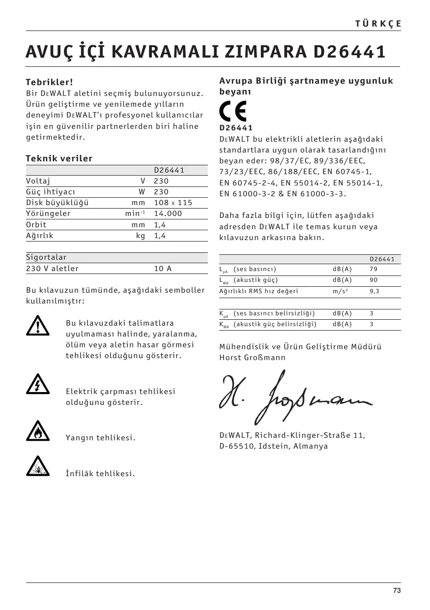 Daha fazla bilgi için, lütfen aşağdaki adresden D E WALT ile temas kurun veya klavuzun arkasna bakn. D26441
