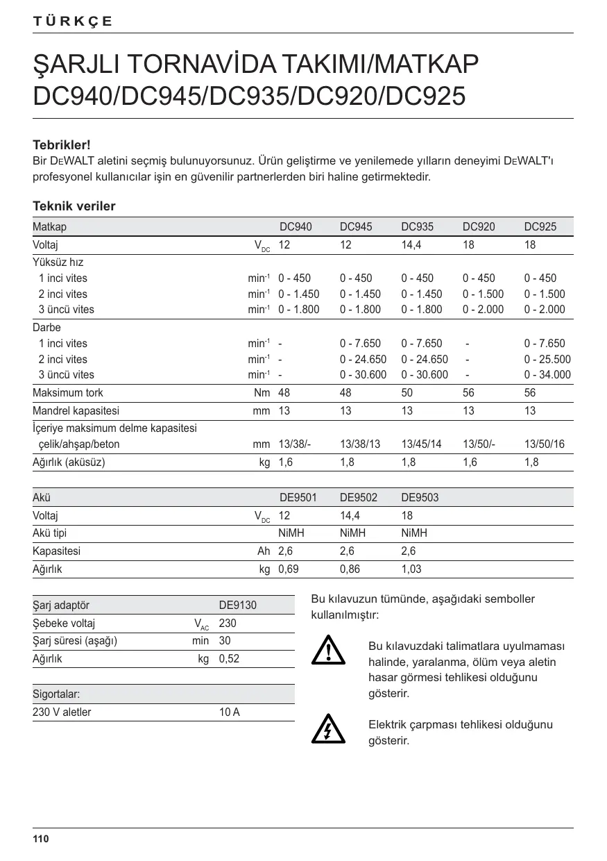 | Matkap | DC940 | DC945 | DC935 | DC920 | DC925 | |