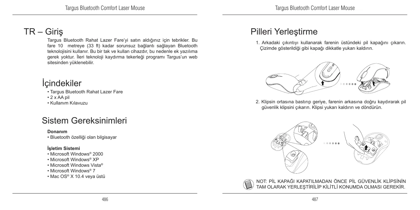 • Souris Laser Bluetooth confort de Targus • 2 x piles AA • Manuel d’utilisateur