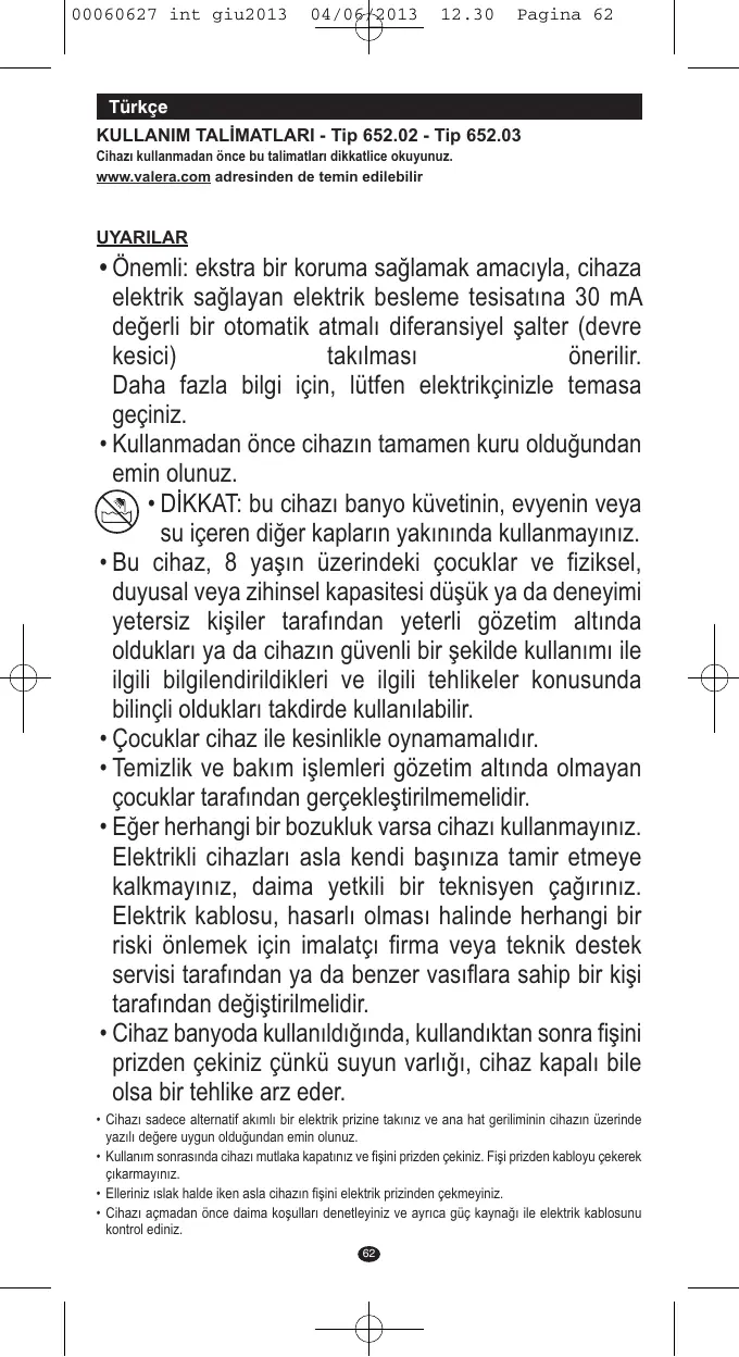 GARANTIE VALERA garantit l’appareil que vous venez d’acheter aux conditions suivantes: