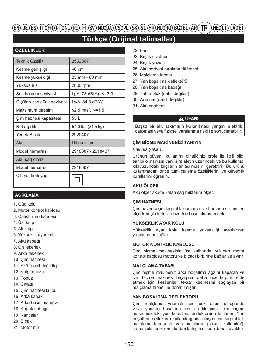 Téléchargez la notice de votre Kablosuz çim biçme makineleri au format PDF gratuitement ! Retrouvez votre notice GD60LM46HP - GD60LM46SPK4 - GD60LM51SPK4 - GREENWORKS et reprennez votre appareil électronique en main. Sur cette page sont publiés tous les documents nécessaires à l'utilisation de votre appareil GD60LM46HP - GD60LM46SPK4 - GD60LM51SPK4 de la marque GREENWORKS.