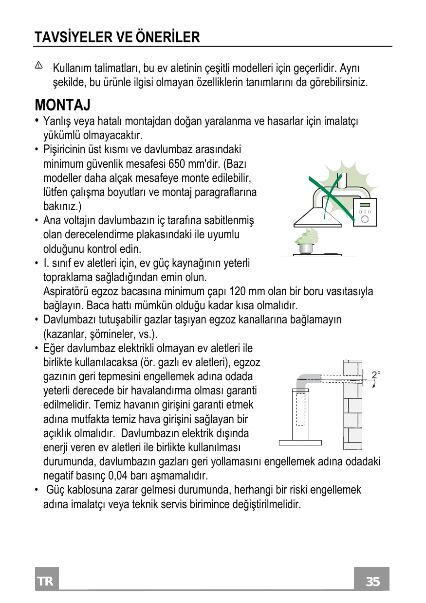 - Davlumbazı asla tasarlandığı amaçlar haricinde kullanmayın.