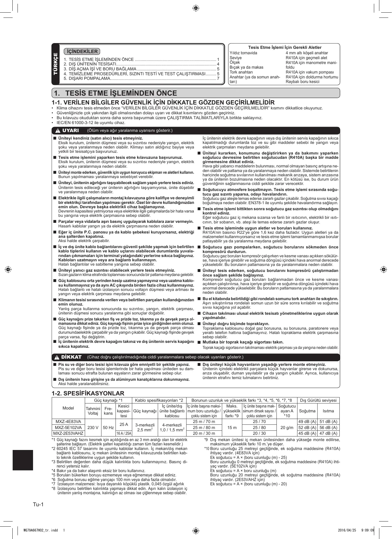 MODE D'EMPLOI MXZ-5E102VA MITSUBISHI