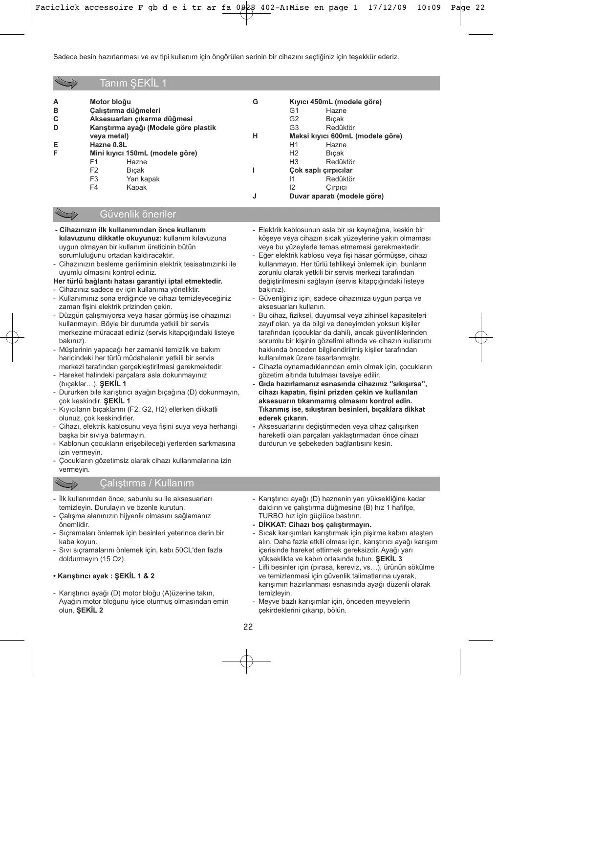 Page 21 Faciclick accessoire F gb d e i tr ar fa 0828 402-A:Mise en page 1 17/12/09 10:09 Sadece besin hazırlanması ve ev tipi kullanım için öngörülen serinin bir cihazını seçti€iniz için teflekkür ederiz. Tanım fiEK‹L 1