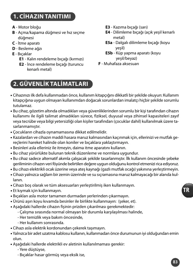 éviter toute accumulation d’aliment dans le magasin. Ne pas utiliser l’appareil pour râper ou trancher des aliments trop durs tels que le sucre ou morceaux de viande. Coupez les aliments pour les introduire plus facilement dans la cheminée du magasin.