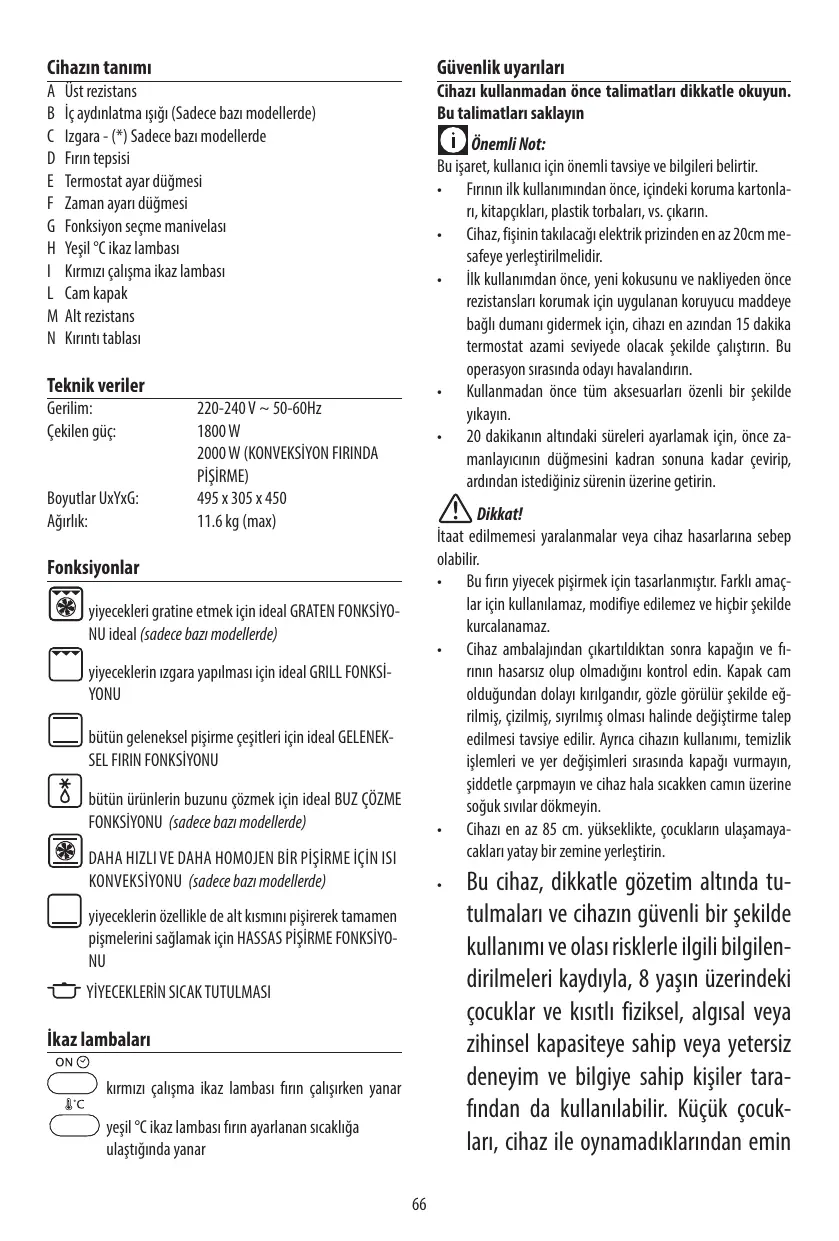Son cordon d’alimentation est défectueux L’appareil est tombé ou s’il présente des dégâts visibles ou des anomalies de fonctionnement. Le cas échéant, afin d’éviter tout risque, faites-le vérifier par le Centre de Service Après-vente le plus proche. N’installez pas l’appareil à proximité de sources de chaleur. N’utilisez pas l’appareil comme source de chaleur. Ne mettez jamais de papier, carton ou plastique dans le four et ne posez jamais rien dessus (ustensiles, grilles ou autres objets). N’introduisez rien dans les bouches de ventilation. Veillez à ne pas les obstruer. Ce four n’est pas conçu pour être encastré. Une fois la porte ouverte, n’y appuyez jamais des objets lourds, des casseroles ou récipients brûlants. Ne tirez pas la poignée vers le bas.