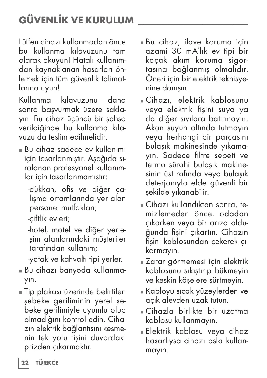 à ce que la prise soit toujours accessible. Évitez tout contact avec les surfaces brûlantes et tenez la verseuse isotherme uniquement par la poignée pour éviter tout risque de brûlure. La verseuse isotherme devient brûlant lors de l’utilisation. Ne déplacez pas l’appareil tant que des liquides chauds sont dans la verseuse isotherme ou si l’appareil est toujours chaud. N’ouvrez pas le couvercle ou le porte-filtre pendant le processus de préparation.