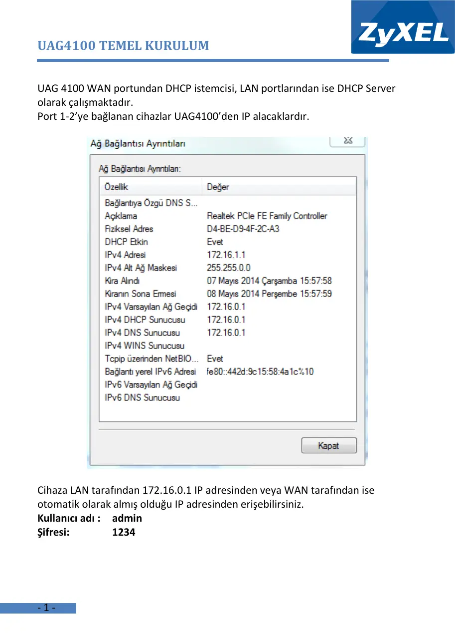 Retrouvez gratuitement la notice de l'appareil UAG4100 ZYXEL au format PDF.