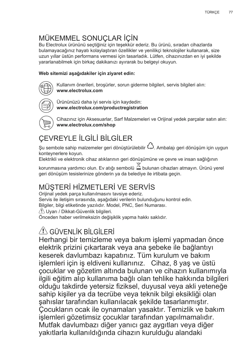 Purtaţi întotdeauna mănuşi de lucru pentru toate operaţiunile de instalare şi întreţinere. Acest aparat poate fi folosit de copii cu vârsta peste 8 ani şi persoane cu capacităţi fizice, senzoriale sau mentale reduse sau lipsite de experienţă şi cunoştinţe, dacă sunt sub supravegheate şi au fost instruite cu privire la utilizarea aparatului în condiţii de siguranţă şi înţeleg riscurile implicate. Copiiilor nu trebuie să li se permită să manipuleze comenzile sau să se joace cu aparatul. Curăţarea şi întreţinerea nu se face de către copii fără supraveghere. Locul în care este instalat aparatul trebuie să fie ventilat suficient, în cazul în care hota de bucătărie se utilizează împreună cu alte dispozitive de