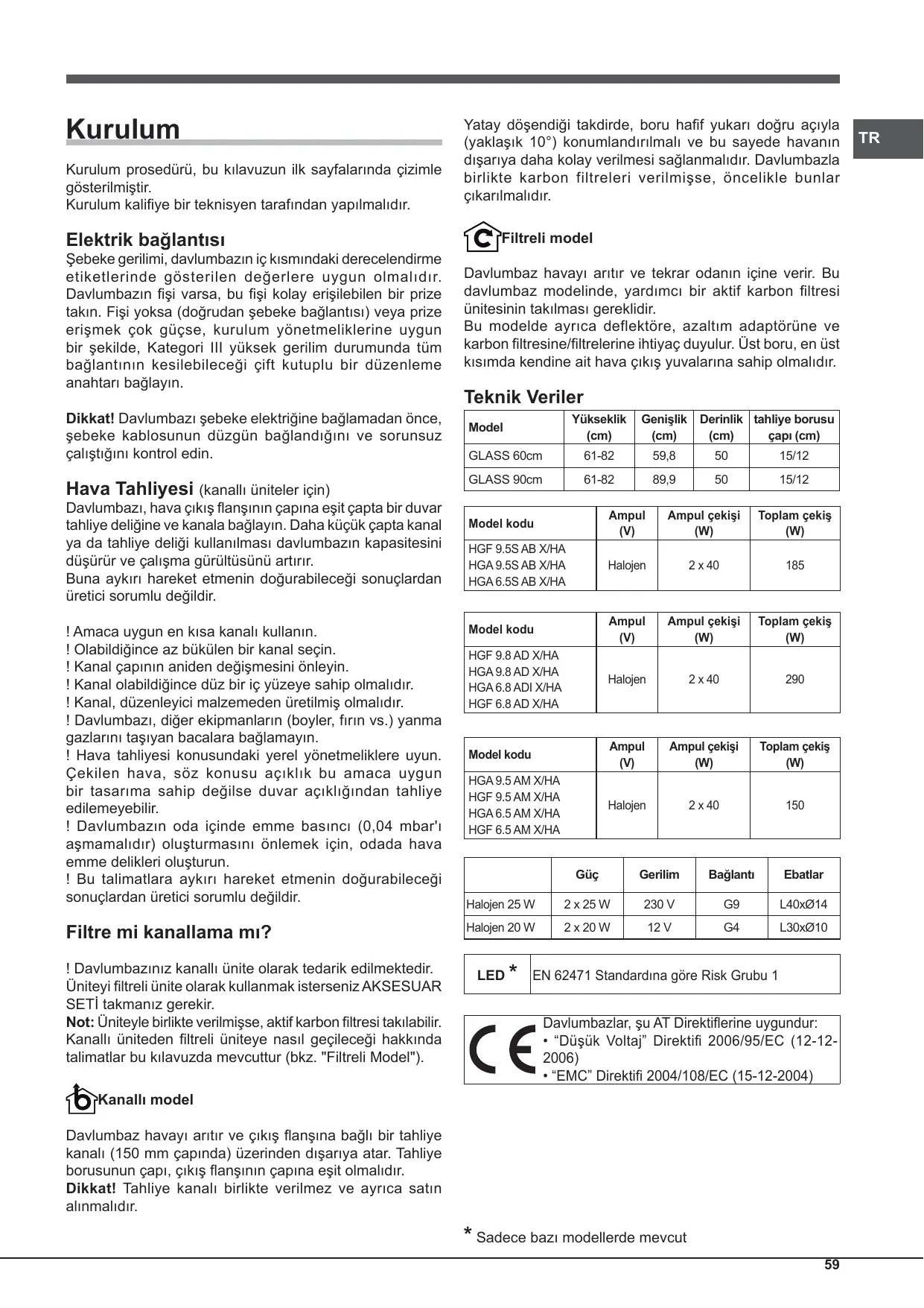 ! La campana está lista para ser utilizada en versión aspirante. Para utilizar la campana en versión filtrante es necesario instalar el KIT ACCESORIO. Nota: Si se suministra en dotación, en algunos casos, el sistema de filtración adicional a base de carbones activos podría ya estar instalado en la campana. La información para transformar la campana de versión aspirante a versión filtrante está contenida en este manual (ver “Versión filtrante”).