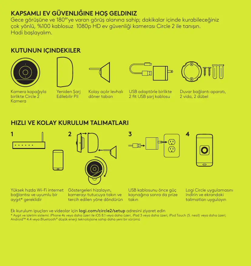 Téléchargez la notice de votre Güvenlik kamerası au format PDF gratuitement ! Retrouvez votre notice CIRCLE 2 - LOGITECH et reprennez votre appareil électronique en main. Sur cette page sont publiés tous les documents nécessaires à l'utilisation de votre appareil CIRCLE 2 de la marque LOGITECH.