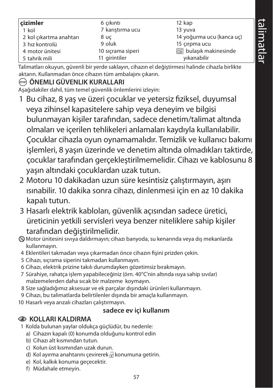 H N’immergez pas le bloc moteur dans du liquide, n’utilisez pas l’appareil dans une salle de bain, à proximité d’une source d’eau ou à l’extérieur.