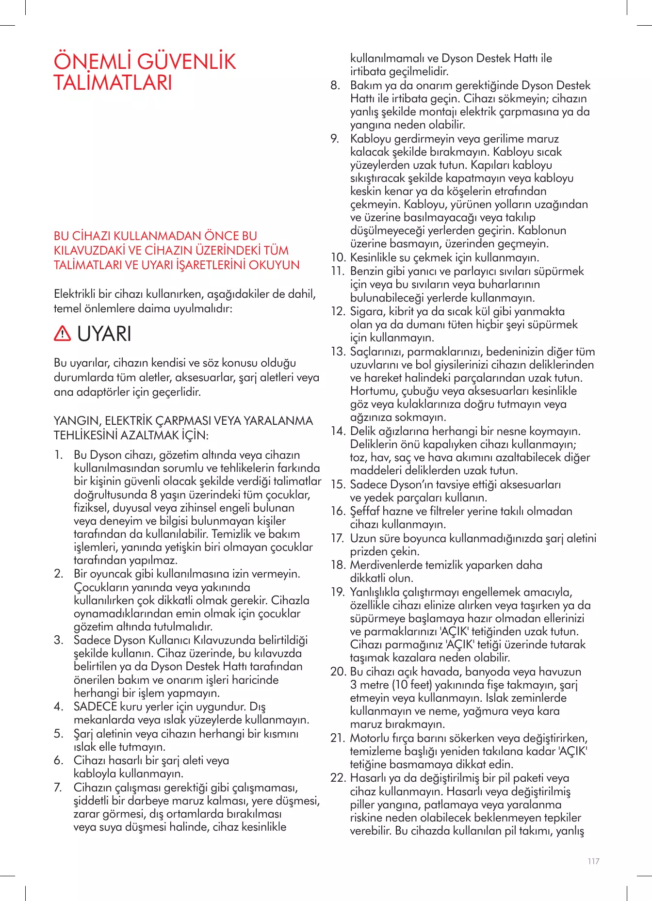 LISEZ ATTENTIVEMENT CES CONSIGNES ET CONSERVEZ-LES Cet appareil Dyson est exclusivement destiné à un usage domestique.