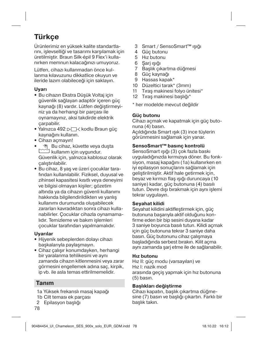 Esta garantía tiene validez en todos los países donde este producto sea distribuido por Braun o por un distribuidor asignado por Braun. En caso de reclamación bajo esta garantía, diríjase al Servicio de Asistencia Técnica de Braun más cercano: www.service.braun.com. Solo para España Servicio al consumidor: Para localizar el Centro de Asistencia Braun más cercano o en el caso de que tenga Vd. alguna duda referente al funcionamiento de este producto, le rogamos contacte con el teléfono de atención al cliente: 8 Fonte de alimentação 9 Acessório de precisão* 10 Pente aparador* (3 mm) 11 Bloco de corte* 12 Cabeça de corte* * não disponível em todos os modelos Botão de alimentação Prima o botão de alimentação (4) para ligar e desligar o aparelho. Quando o aparelho é ligado, a luz Smart Trek je huid altijd strak als je je epileert. Beweeg het apparaat in een langzame, continue beweging zonder druk tegen de haargroei in, in de richting van het lampje. Afhankelijk van het model zijn er verschillende opzetstukken verkrijgbaar: Massageopzetstuk (1a): voor de meeste comfort