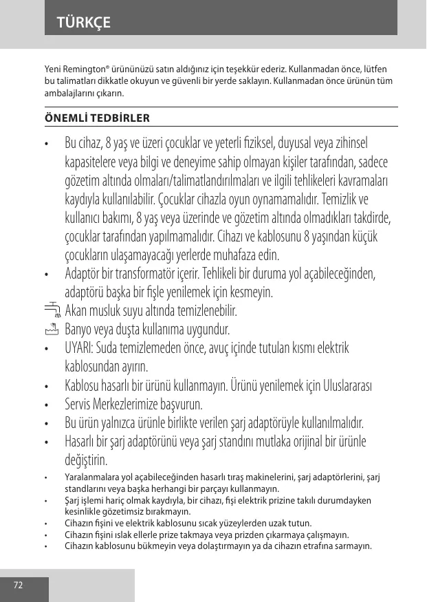 Téléchargez la notice de votre Tıraş makinesi au format PDF gratuitement ! Retrouvez votre notice XR1500 - REMINGTON et reprennez votre appareil électronique en main. Sur cette page sont publiés tous les documents nécessaires à l'utilisation de votre appareil XR1500 de la marque REMINGTON.