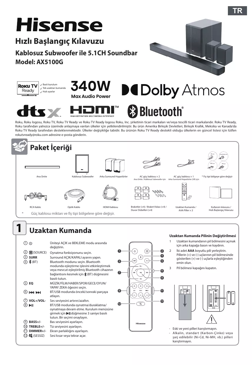 BARRE DE SON AX5100G - Ses çubuğu HISENSE - Notice d'utilisation et mode d'emploi gratuit