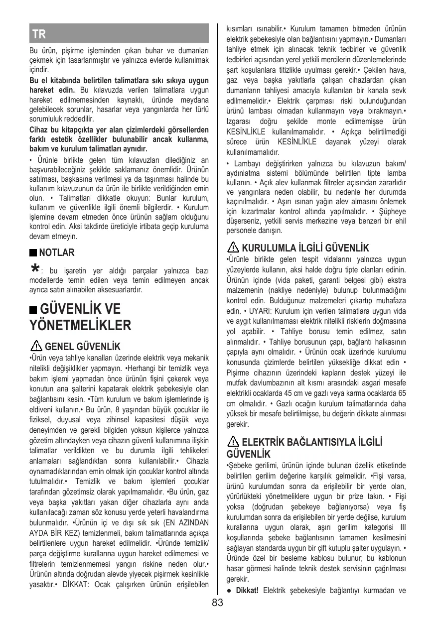 FR Le produit est conçu pour l’aspiration des fumées et des vapeurs de cuisson et est destiné au seul usage domestique.