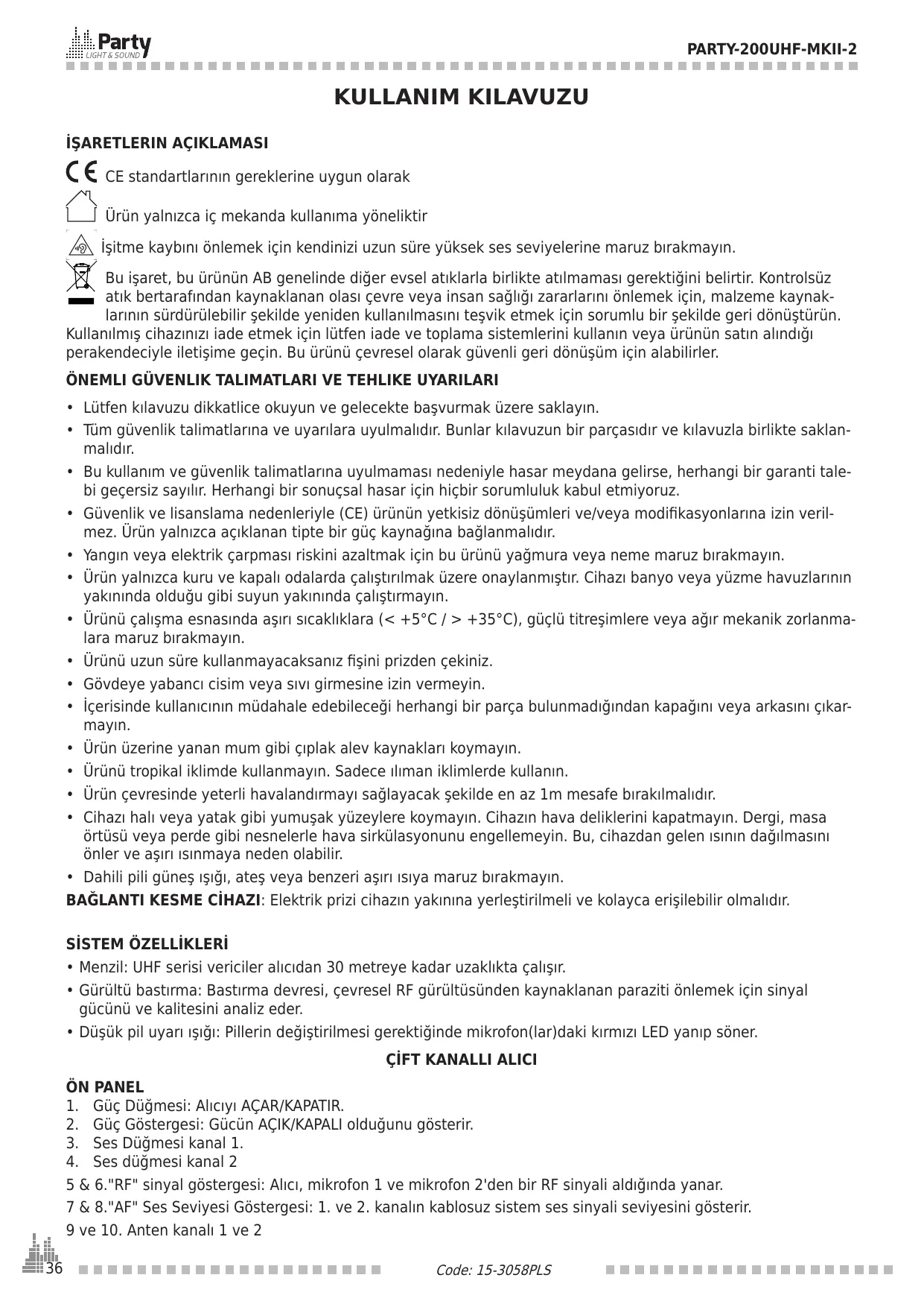 Retrouvez gratuitement la notice de l'appareil PARTY-200UHF PARTY LIGHT&SOUND au format PDF.