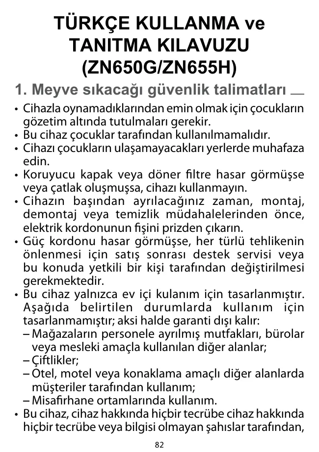 TÜRKÇE KULLANMA ve TANITMA KILAVUZU (ZN650G/ZN655H)
