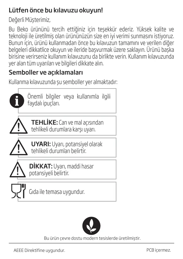 Ünemli güvenlik ve cevre talimatlar: