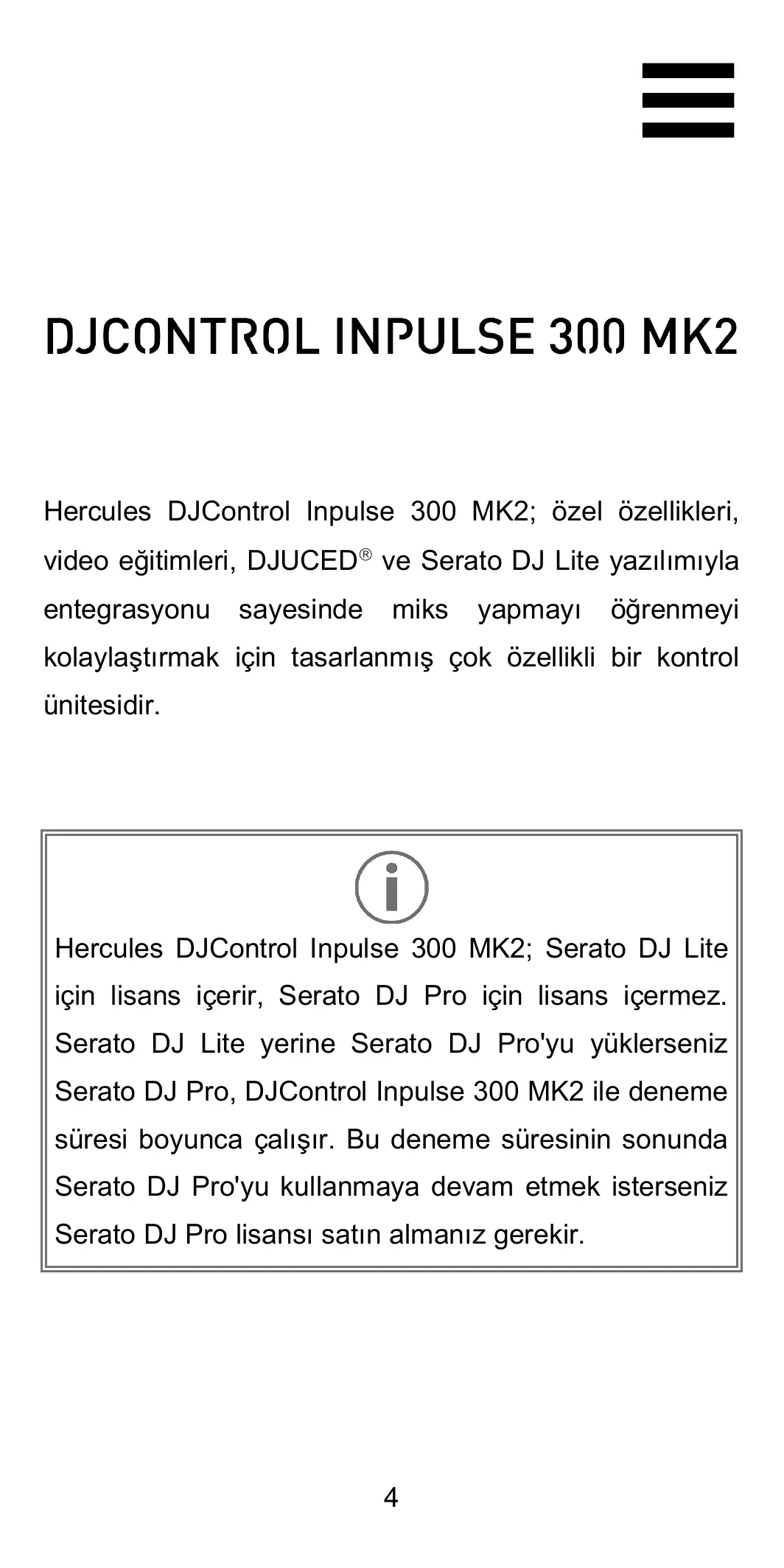 INPULSE 300 MK2 - Contrôleur usb HERCULES - Notice d'utilisation et mode d'emploi gratuit