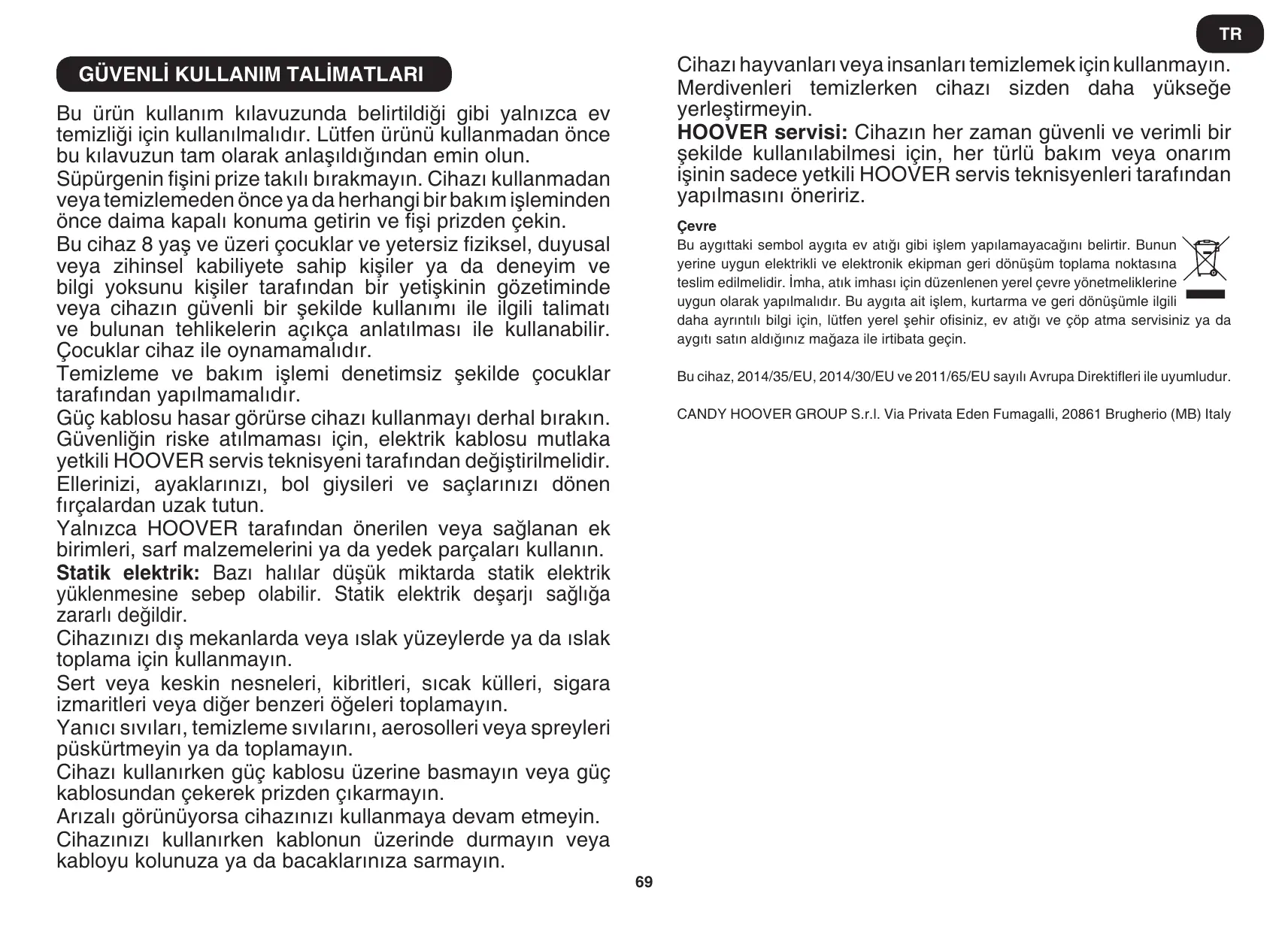 Téléchargez la notice de votre Torbasız elektrikli süpürge au format PDF gratuitement ! Retrouvez votre notice HP710PAR - HOOVER et reprennez votre appareil électronique en main. Sur cette page sont publiés tous les documents nécessaires à l'utilisation de votre appareil HP710PAR de la marque HOOVER.