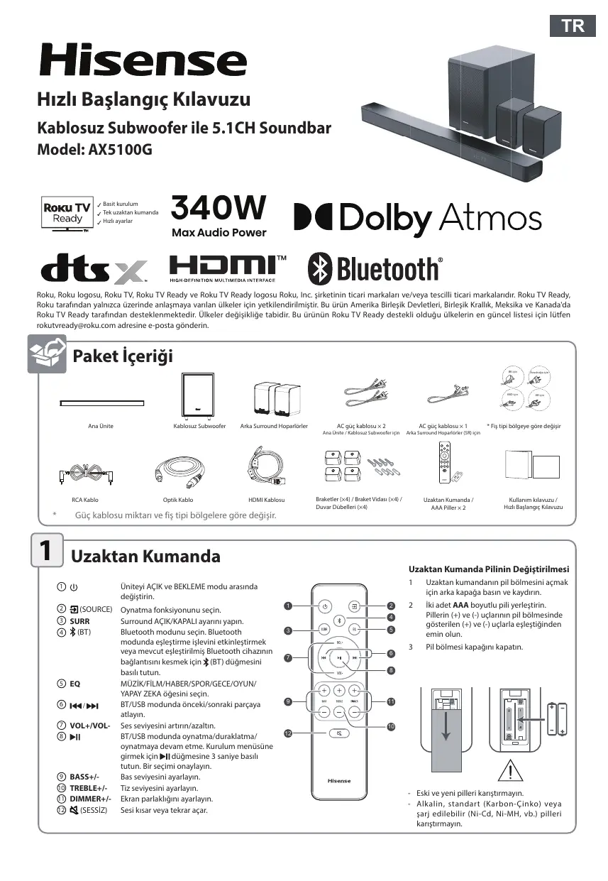 Téléchargez la notice de votre Ses çubuğu au format PDF gratuitement ! Retrouvez votre notice AX5000 - HISENSE et reprennez votre appareil électronique en main. Sur cette page sont publiés tous les documents nécessaires à l'utilisation de votre appareil AX5000 de la marque HISENSE.