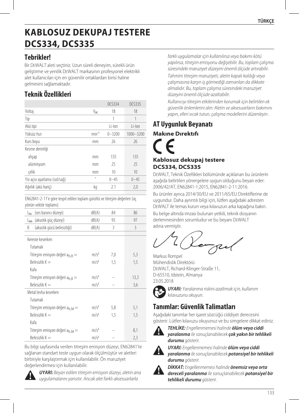 Téléchargez la notice de votre Kablosuz dekupaj testere au format PDF gratuitement ! Retrouvez votre notice DCS334NT-XJ - DCS334 - DCS335 - DEWALT et reprennez votre appareil électronique en main. Sur cette page sont publiés tous les documents nécessaires à l'utilisation de votre appareil DCS334NT-XJ - DCS334 - DCS335 de la marque DEWALT.