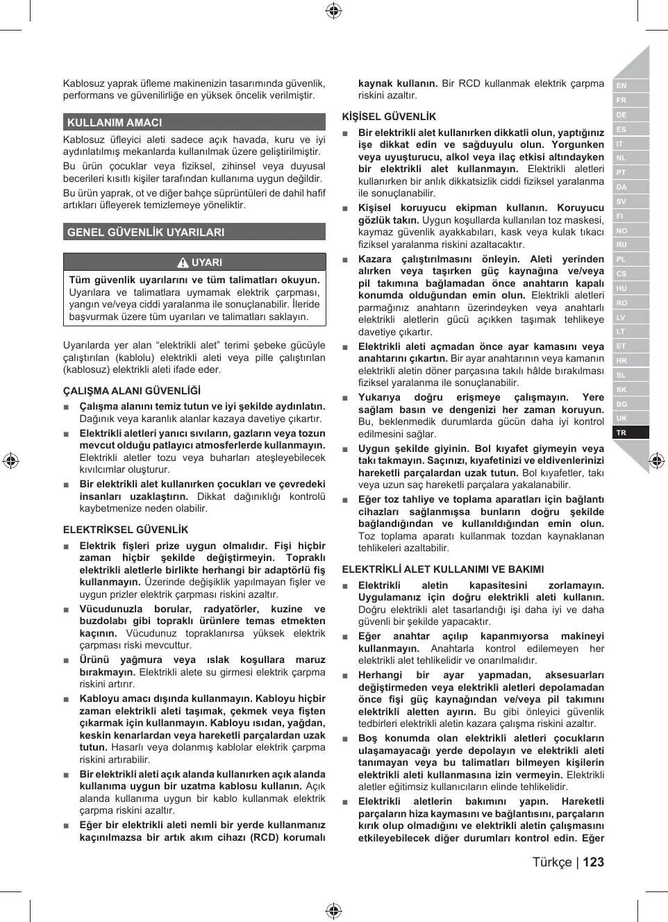 RBL1850S RBL1820S OBL1820S - Yaprak üfleyici RYOBI - Notice d'utilisation et mode d'emploi gratuit