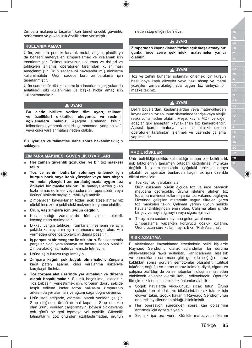 Apague el producto inmediatamente si se atasca. No vuelva a encender el producto cuando est atascado, ya que podria generar un retroceso repentino con una elevada fuerza reactiva. Analice por qué se ha atascado el producto y rectifiquelo, prestando atenciôn a las instrucciones de seguridad