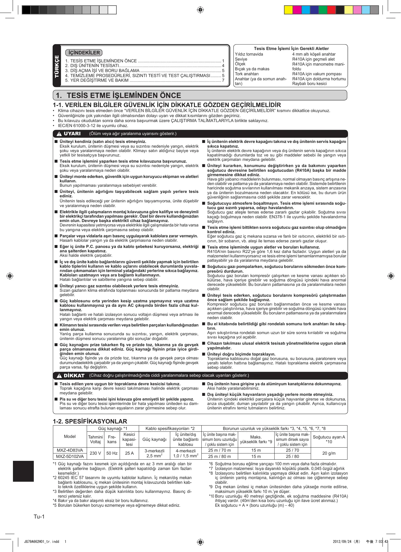 MODE D'EMPLOI MXZ-4D83VA MXZ-5D102VA MITSUBISHI ELECTRIC