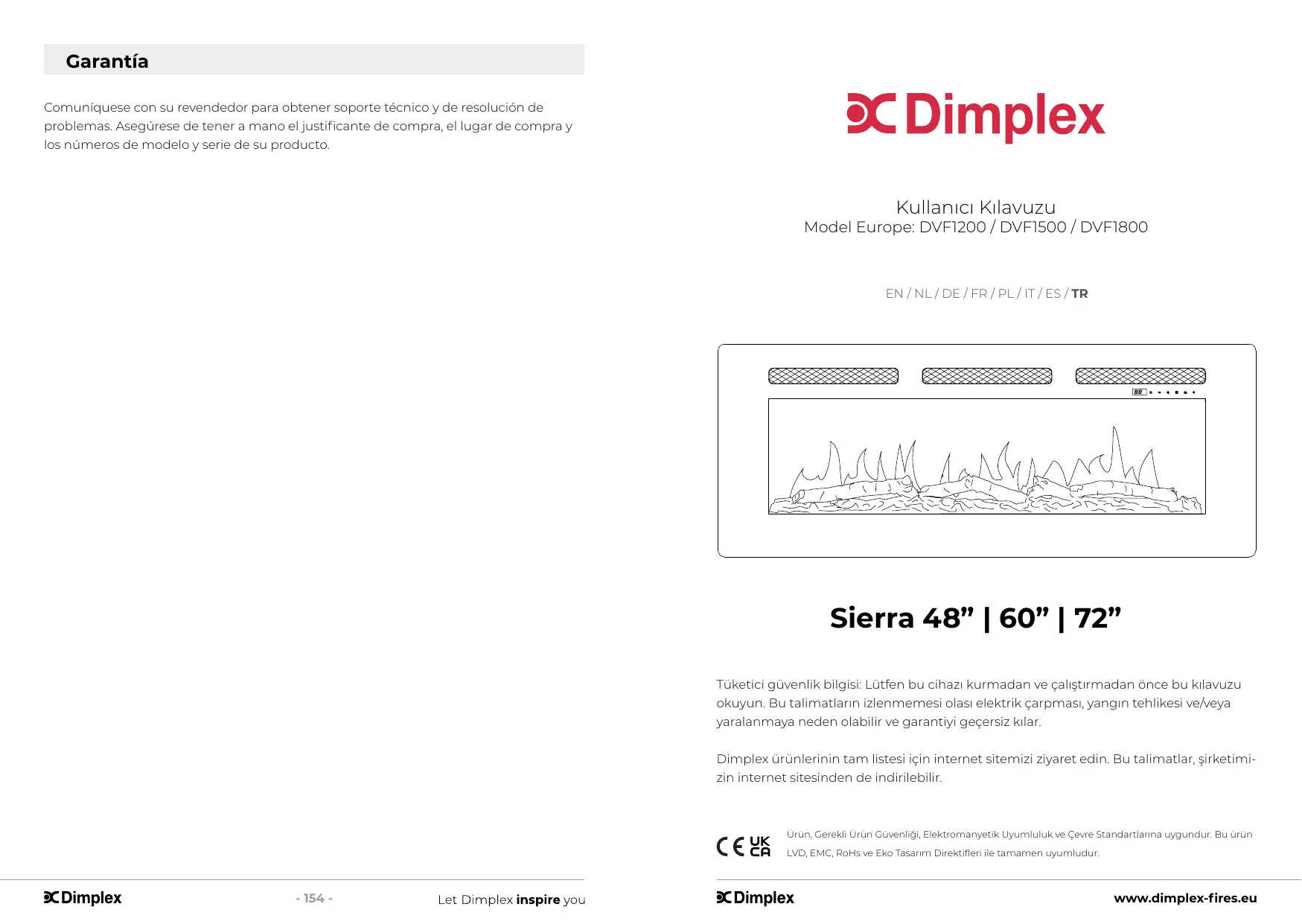 DVF1200 / DVF1500 / DVF1800, DVF1200-UK / DVF1500-UK / DVF1800-UK - Cheminée électrique DIMPLEX - Notice d'utilisation et mode d'emploi gratuit