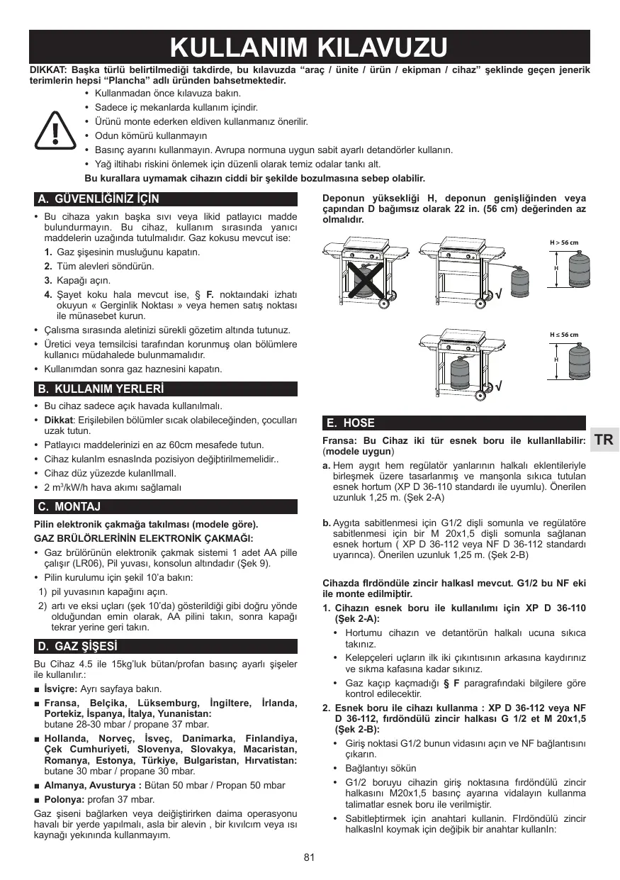 du propane. Sa longueur ne devra pas excéder 1,20 m. Il devra être changé s’il est endommagé, s'il présente des craquelures, lorsque les conditions nationales l'exigent ou selon sa valid
