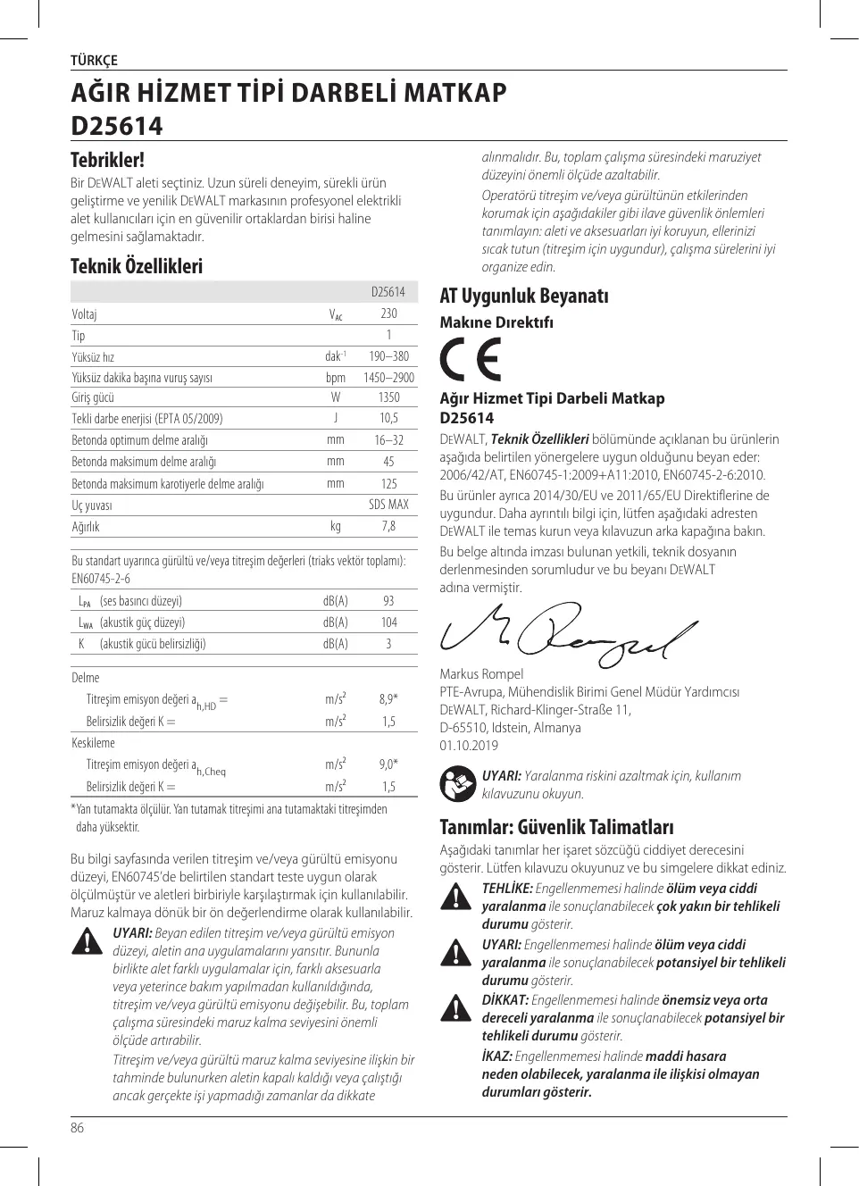 Le soussigné est responsable de la compilation du fichier technique et fait cette déclaration au nom de DEWALT.