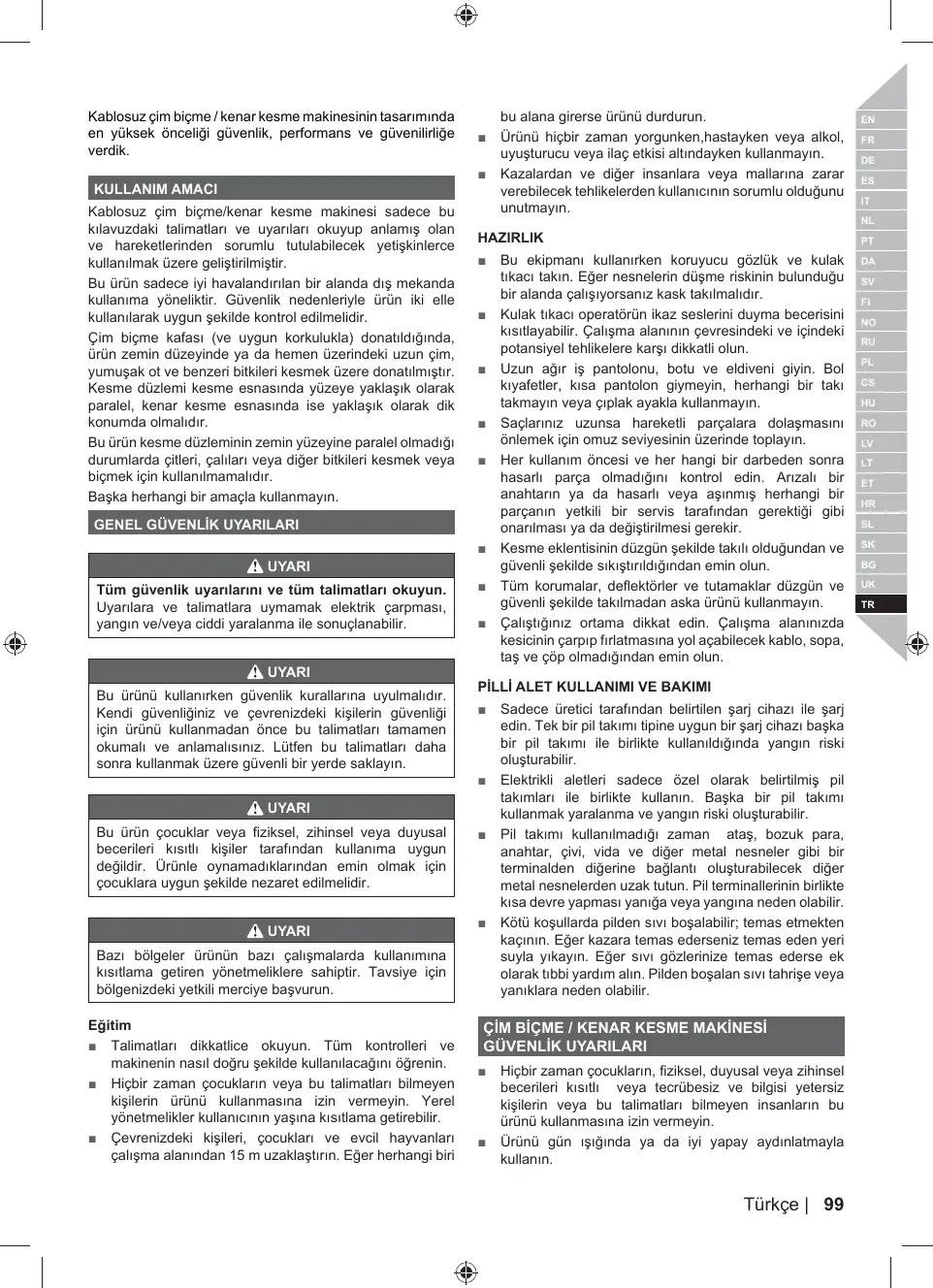 DE SÉCURITÉ CONCERNANT AZON/COUPE-BORDURE Ne laissez jamais les enfants, les personnes aux capacités physiques, sensorielles ou mentales réduites ou n'ayant pas l'habitude ou les connaissances suffisantes, ni les personnes non familiarisées avec ces instructions utiliser ce produit