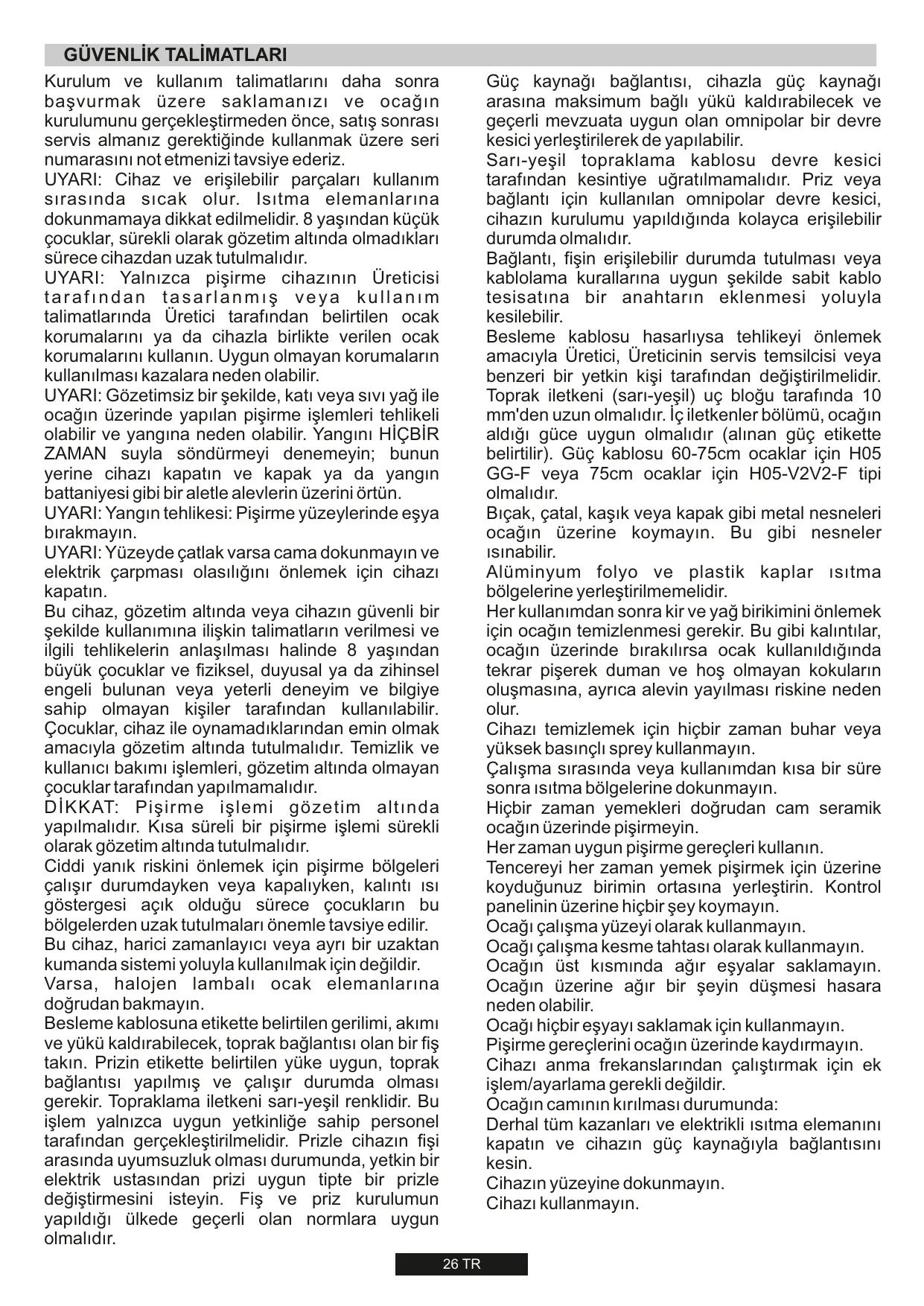 25 PL GÜVENLIK TALIMATLARI Kurulum ve kullanim talimatlarint daha sonra basvurmak üzere saklamanizi ve ocaÿin kurulumunu gerçeklestirmeden ônce, satis sonrasi servis almaniz gerektiginde kullanmak üzere seri numarasini not etmenizitavsiye ederiz.