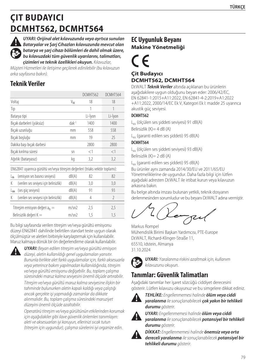 Téléchargez la notice de votre Çit budayıcılar au format PDF gratuitement ! Retrouvez votre notice DCMHT562 - DCMHT564 - DEWALT et reprennez votre appareil électronique en main. Sur cette page sont publiés tous les documents nécessaires à l'utilisation de votre appareil DCMHT562 - DCMHT564 de la marque DEWALT.