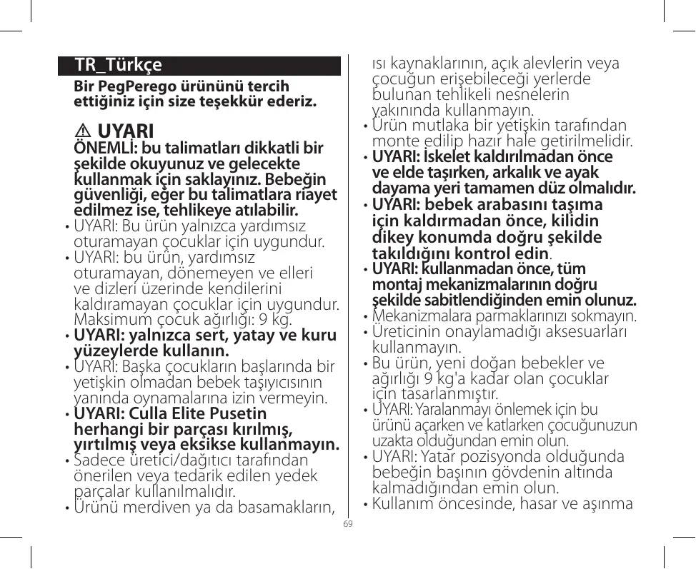 Culla Elite - Bebek arabaları ve aksesuarları PEG PEREGO - Notice d'utilisation et mode d'emploi gratuit