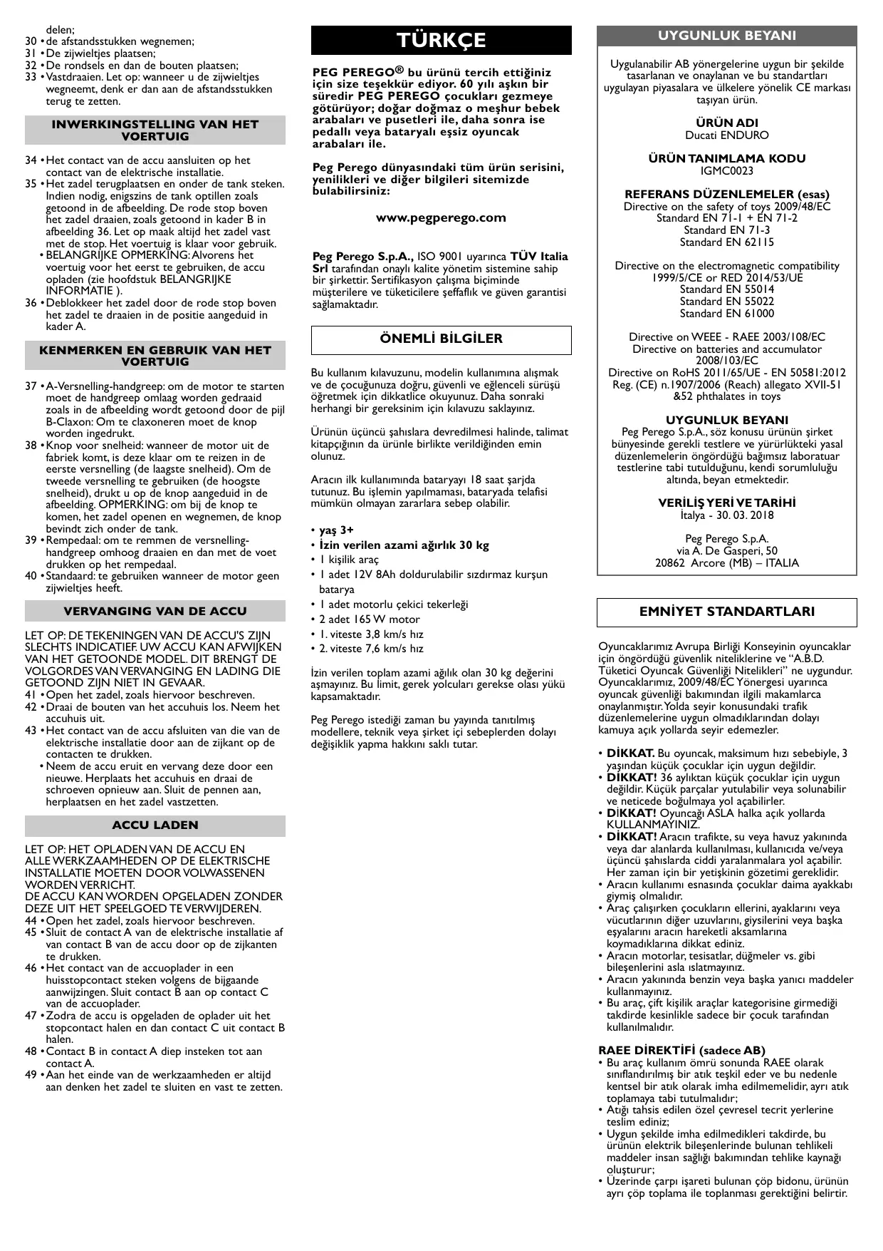 Retrouvez gratuitement la notice de l'appareil DUCATI ENDURO PEG PEREGO au format PDF.