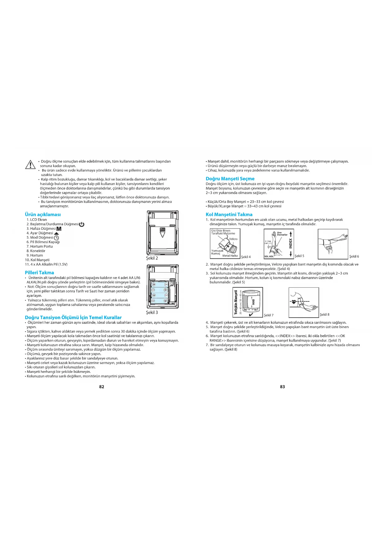 - Büyük/XLarge Manşet = 33~43 cm kol çevresi Kol Manşetini Takma