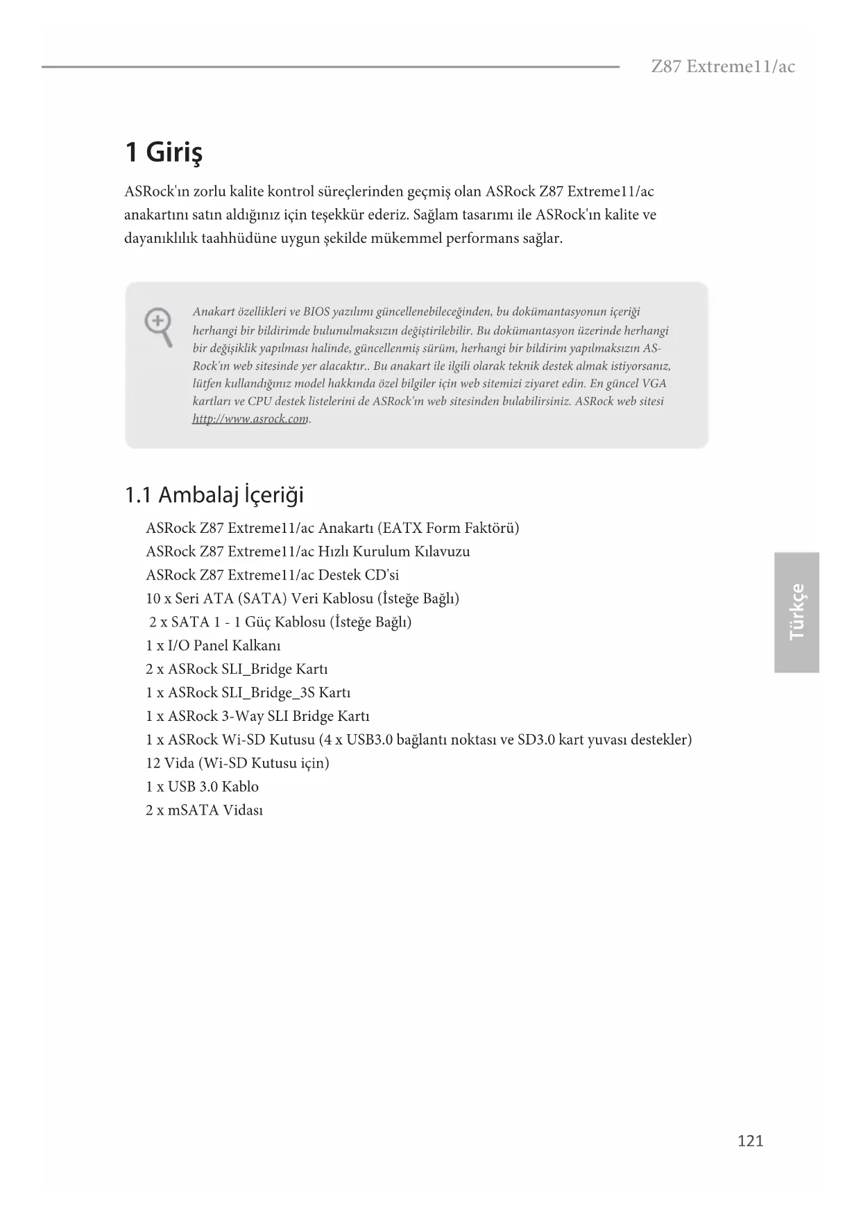 ASRock Z87 Extreme11/ac Hızlı Kurulum Kılavuzu