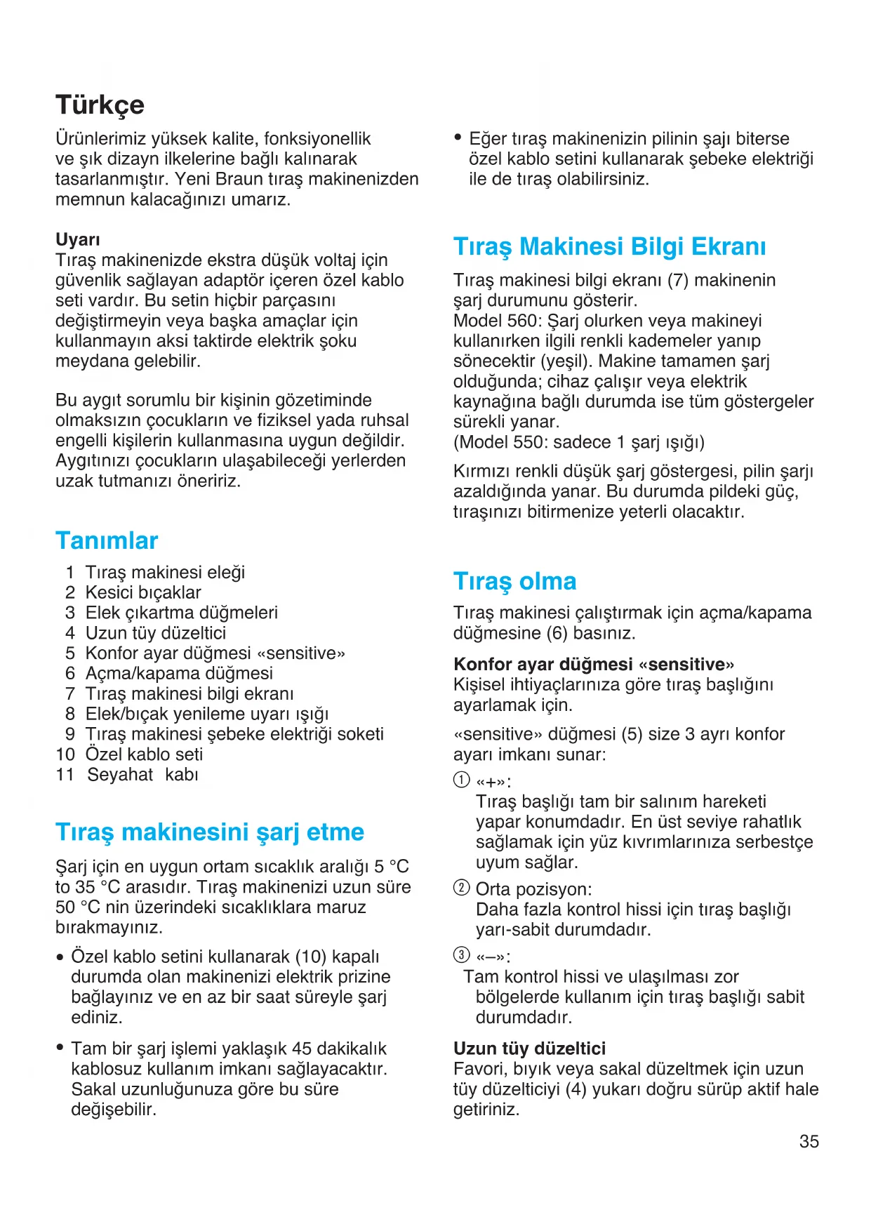 to 35 °C arasıdır. Tıraş makinenizi uzun süre