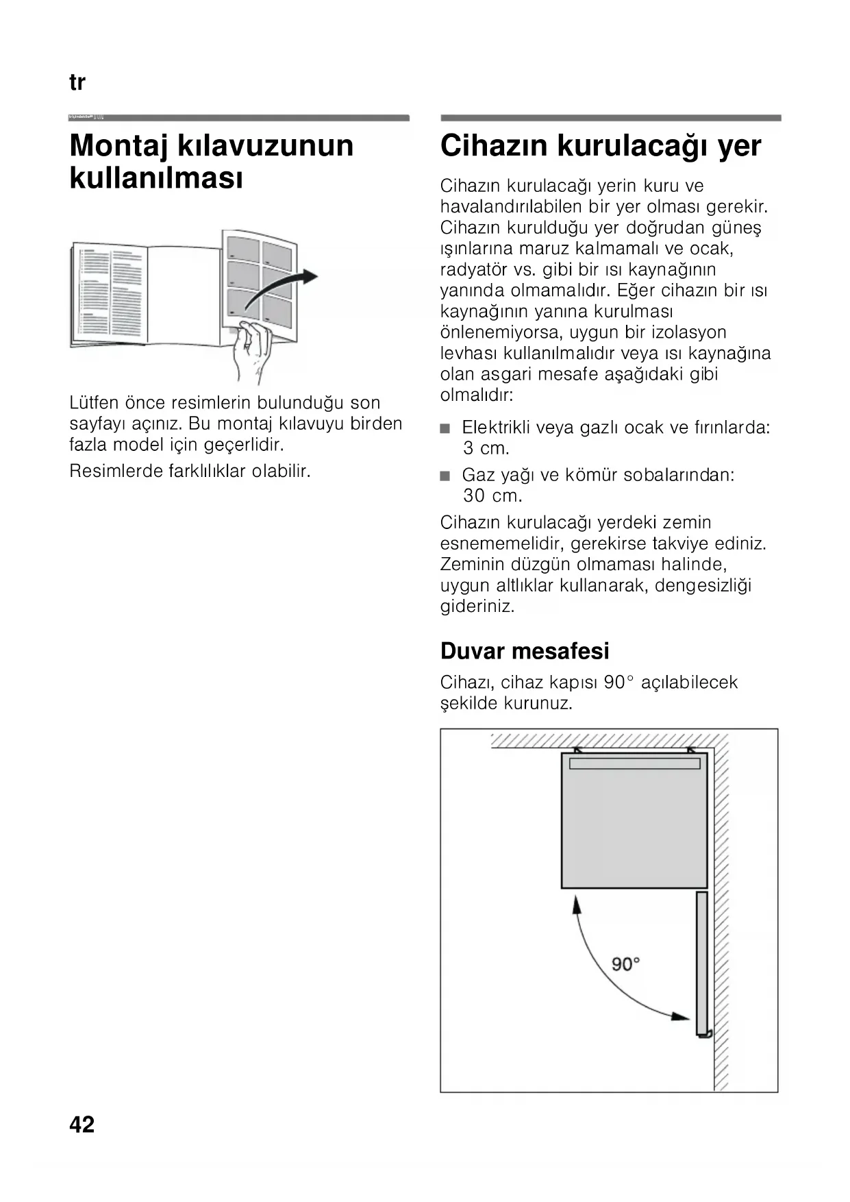 Cihazın kurulacağı yer 42