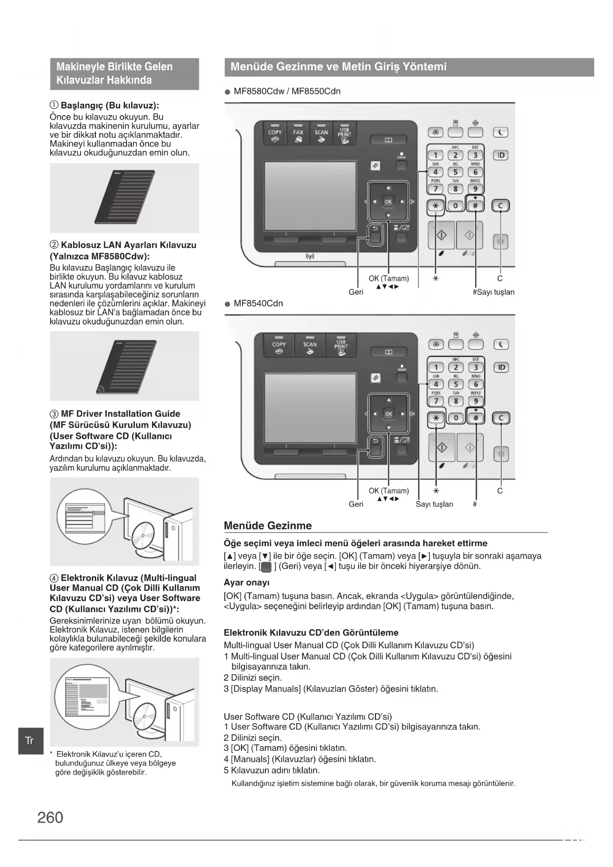 MF8580Cdw / MF8550Cdn OK (Tamam) ▲▼◀▶ #Sayı tuşları