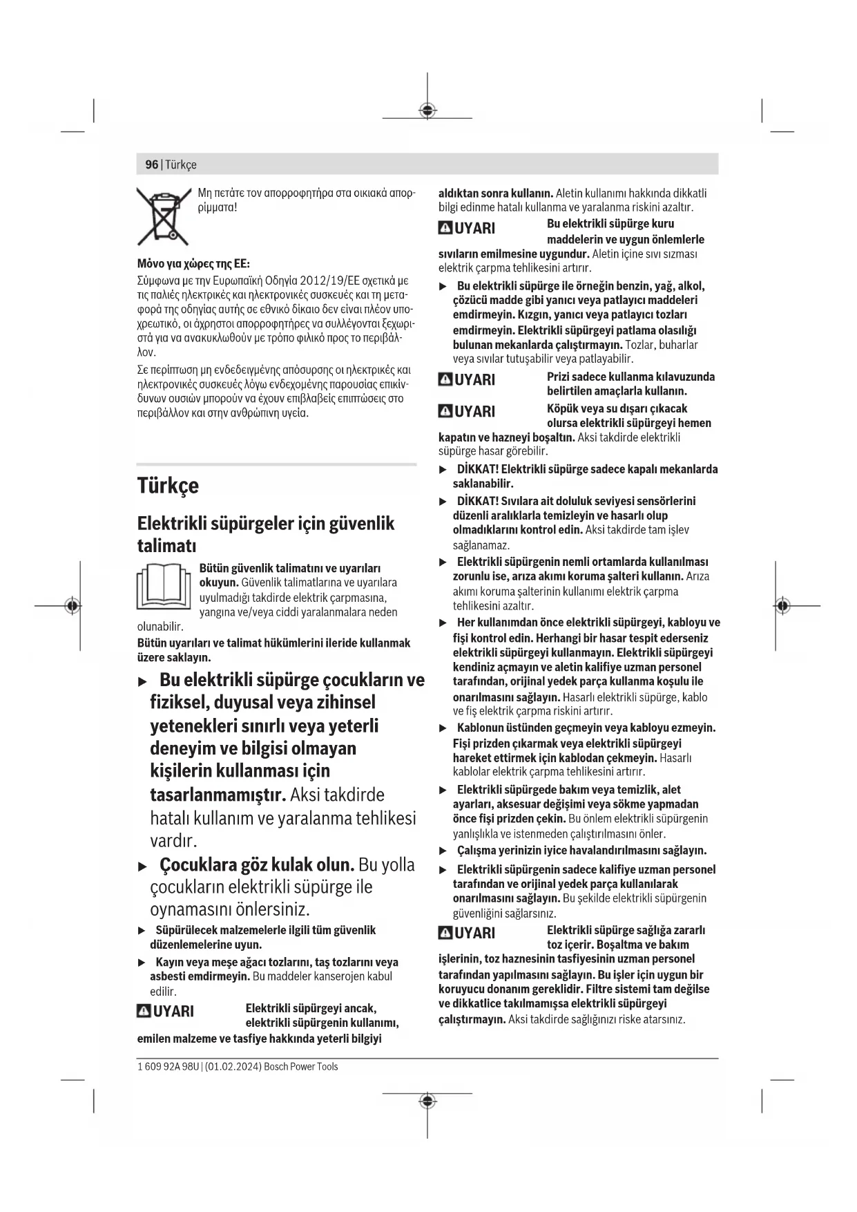 Bosch Power Tools 1 609 92A 98U | (01.02.2024)102 | Türkçe