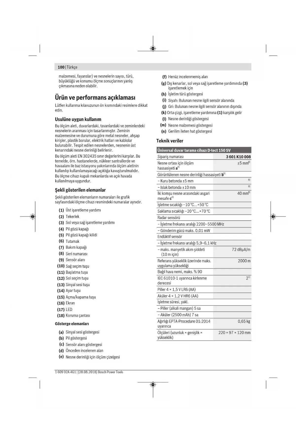 Bosch Power Tools 1 609 92A 4G1 | (28.08.2018)100 | Türkçe